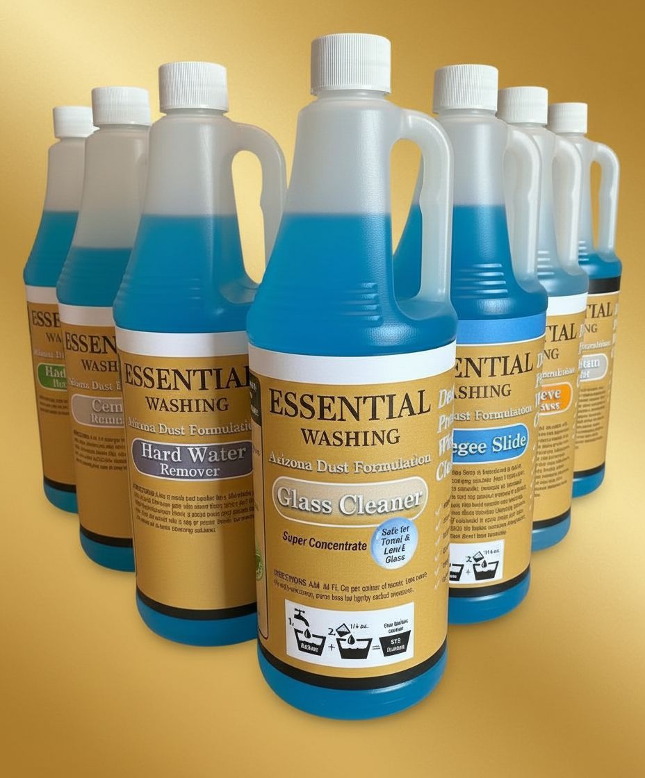 Essential Washing technicians use proprietary cleaning methods and product formulations that break the ionic bond between the dust and glass to completely clean and protect your property.
